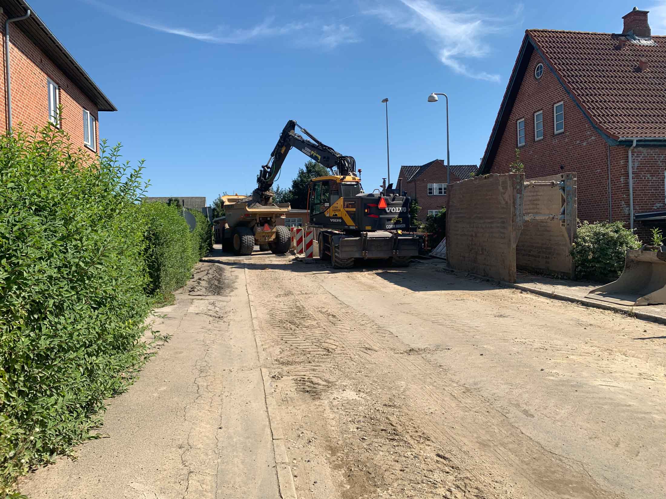 Ved projektet genanvendte vi opgravede materialer til opbygning af de beboede sidevej. I dette tilfælde var det en helt perfekt løsning i forhold til beboerne, da støvgeneren i løbet af den tørre sommer blev betydeligt mindsket.
